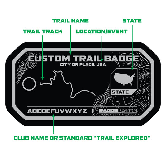 Our Badges are an easy way to mark all of your trips near and far. Trails, roads and special events explored with your 4x4, on 2 wheels, or on foot!