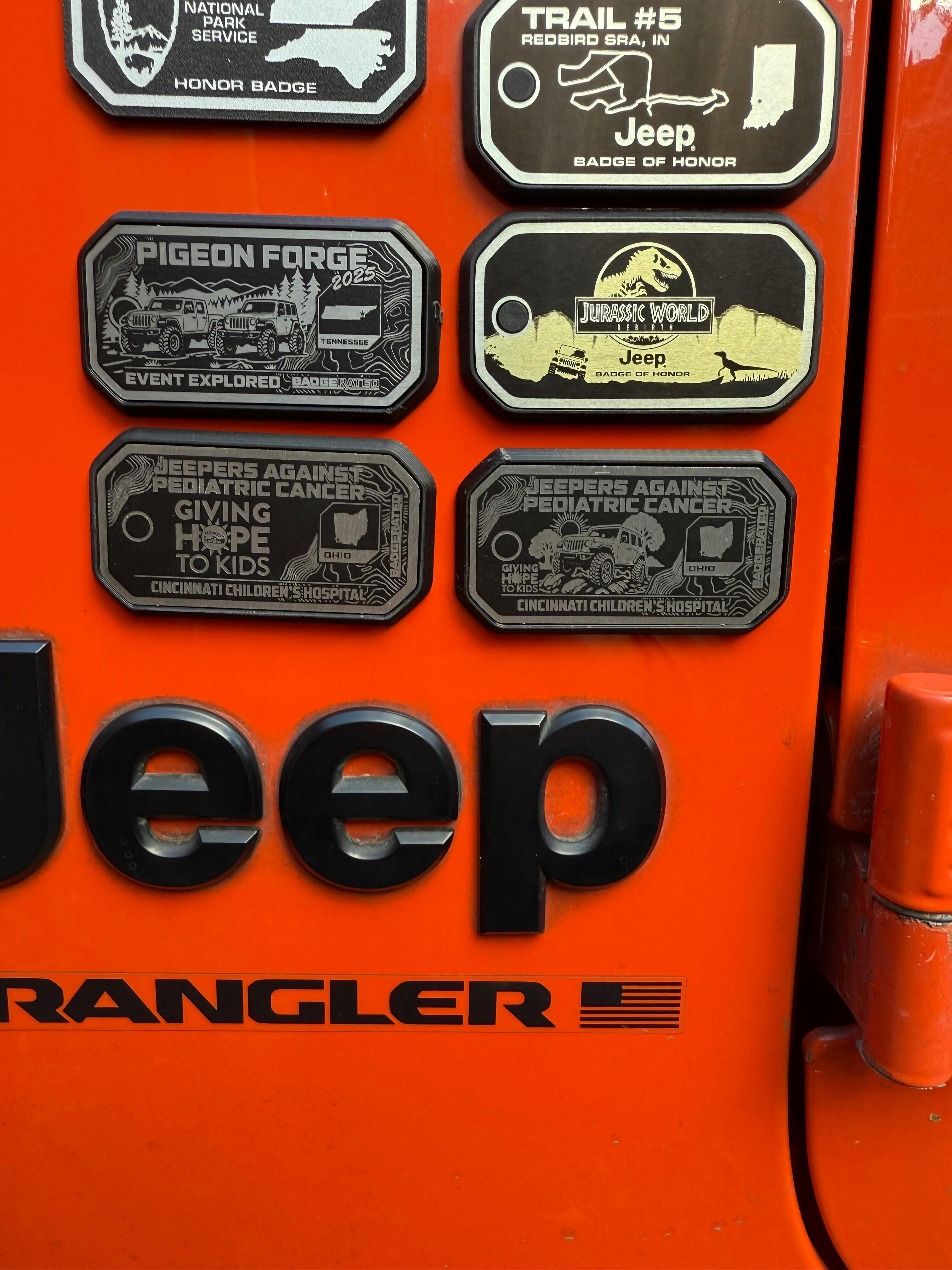 Display all of your adventures on your 4x4! These metal and plastic custom honor badges are designed to be used on the outside of your vehicle and survive the elements.